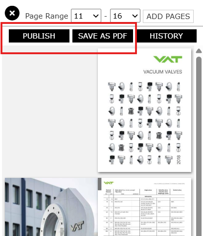 Publish generates a new, shareable digital edition with a unique URL while Save as PDF downloads a branded PDF version directly to your device.