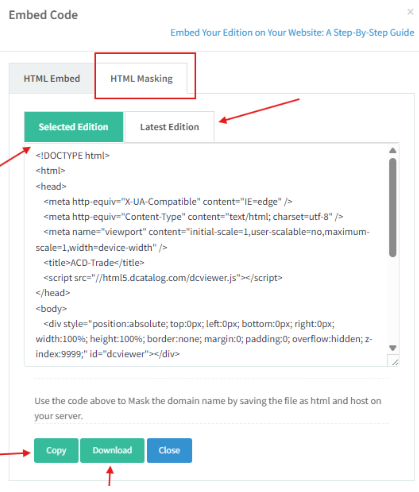 HTML Masking is similar to the Embed option, but with one main difference: instead of inserting the catalog as part of an existing HTML page, masking loads the catalog as a standalone page under your own domain.