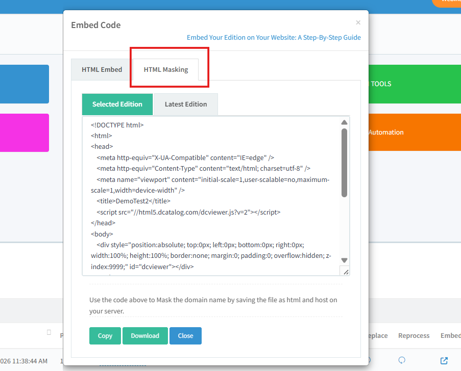 This will launch a pop-up with a tab for “HTML Embed” and “HTML Masking.” Click the tab for “HTML Masking," then click the button to download.