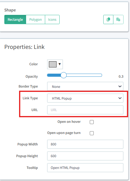 3. On the right-hand side, use the shape button to create the shape around the image where you would like the pop up to go