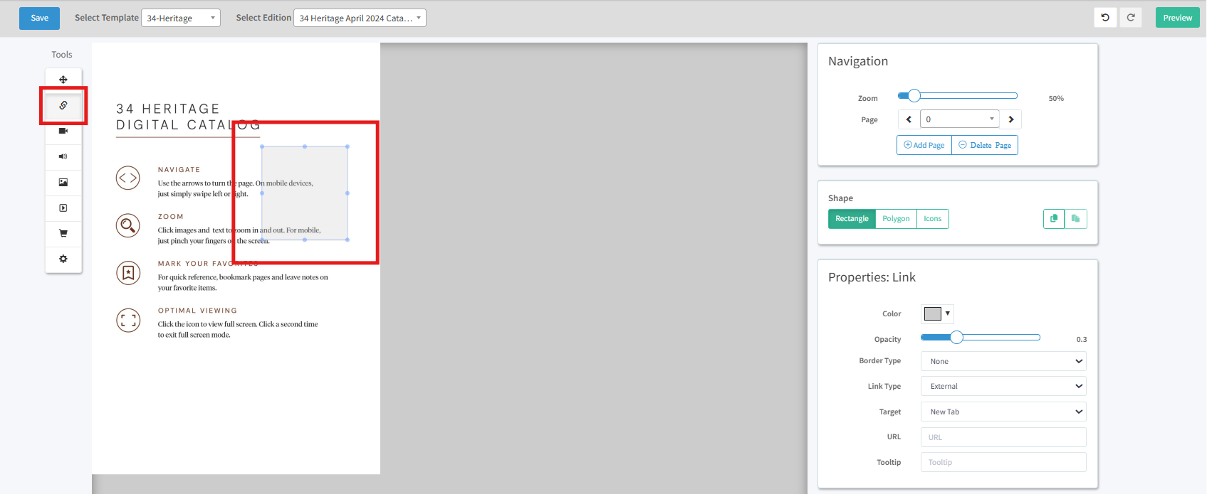 Similar to the video and image pop up features, the HTML pop up enables you to include the URL as a pop up right on the page. Use the link tool to add an html pop up to your edition.