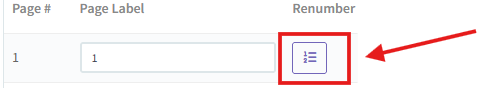 3. Once you have decided where page 1 starts, you can press the renumber button and the pages will renumber starting with 1.