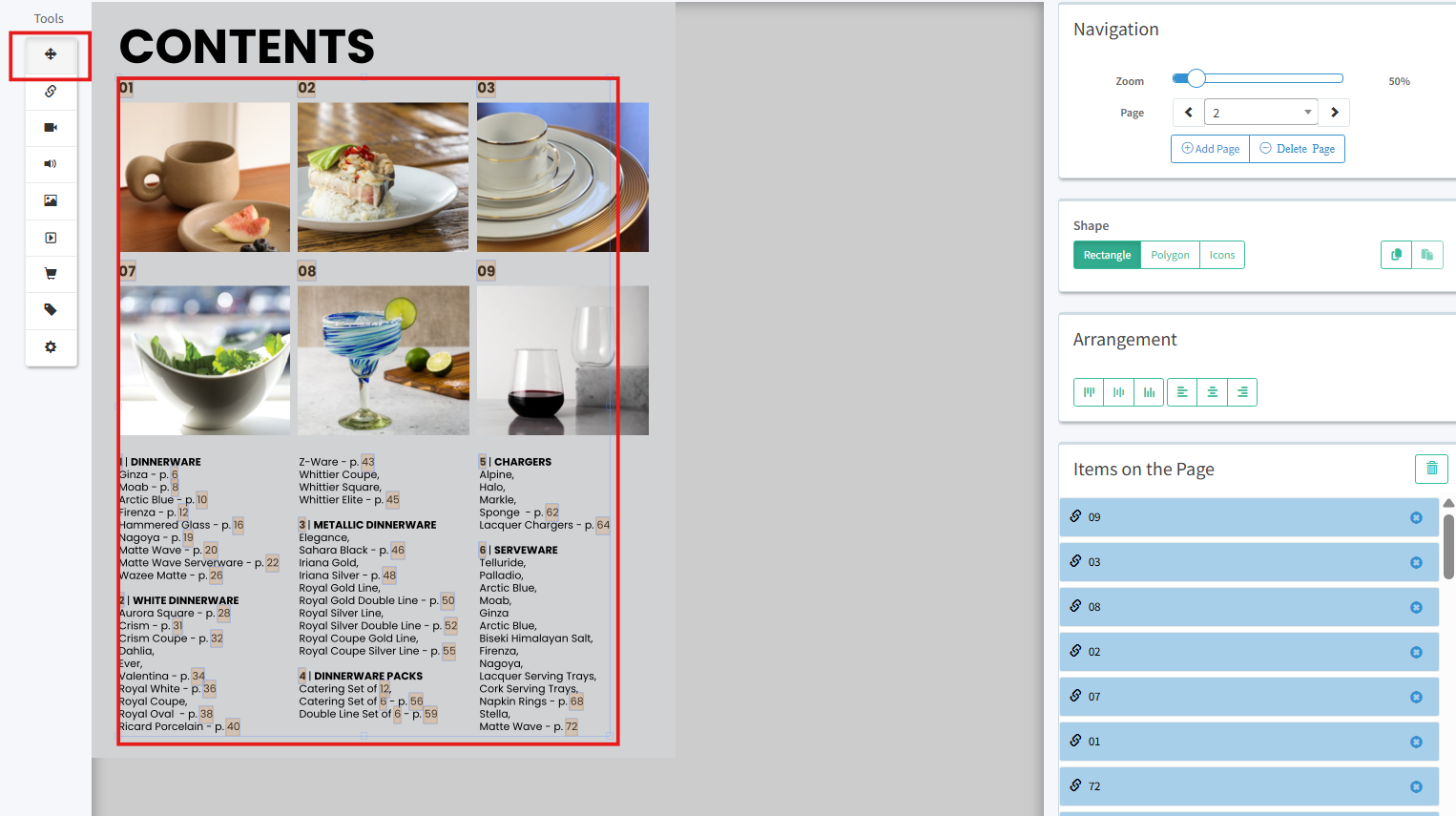 If you added several items, but find you don't need them all, or you need to quickly delete the items and start over, the move tool allows you to select multiple items on page (links, images, video clips) and delete them all at once.